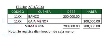 Ejemplo: se disminuye caja menor de 500.000 a 300.000.