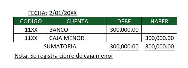 En este tipo de registros el valor que tenemos autorizados como fondos de caja menor aumentan, disminuyen o quedan en ceros, y por esta razón debemos afectar la cuenta de caja menor.